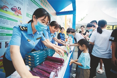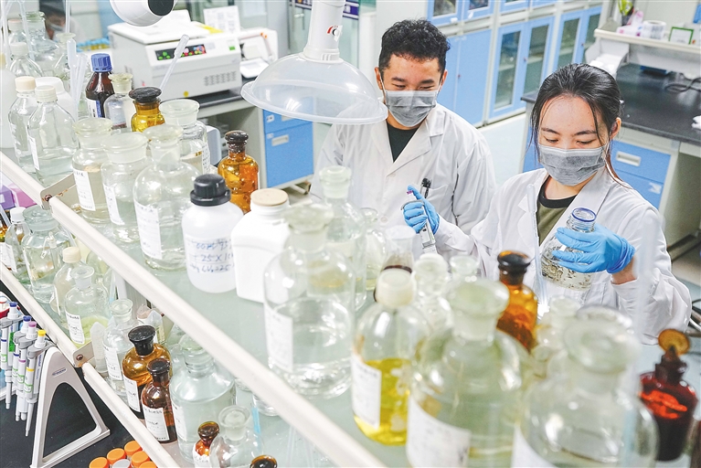 检测室里,工作人员对抽样产品细致检查,排查隐患、防范风险;