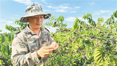 “这样打理,咖啡树才能够把充足营养供应给老枝。”王世贤从老枝条上摘下一棵成熟的咖啡豆掰开接着说,“这老枝上结出的咖啡豆颗粒饱满,果汁浓稠,品质非常好”。