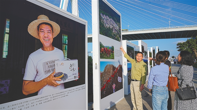 11月3日,海南省定点帮扶先进典型成果图片展在海口云洞图书馆外观海步道开展,吸引市民游客观展。据了解,此次活动主题为“乡村振兴正当时 踔厉奋发向未来”,展览将持续到11月30日,通过图文对照的方式,从产业发展、消费增收、教育帮扶、乡村建设、乡村治理、就业帮扶、文化建设等方面集中展示83个定点帮扶单位参与行政村帮扶的成效。本报记者 张茂 摄