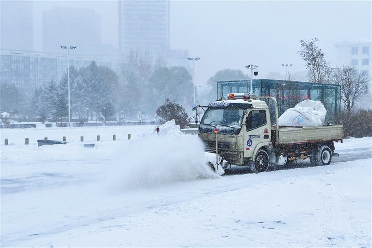 记者6日中午在长春、沈阳、哈尔滨等地看到,纷纷扬扬的大雪覆盖了路面,大型机械与清冰雪作业人员配合作业,加速清冰雪。长春市提前两天制定了清雪工作预案,目前全市1.6万名环卫作业人员、1700余台套清雪车辆设备正奋战在清雪一线。