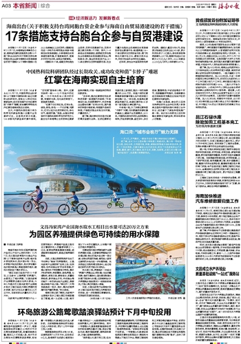 海南出台《关于积极支持台湾同胞台资企业参与海南自由贸易港建设的若干措施》~~~