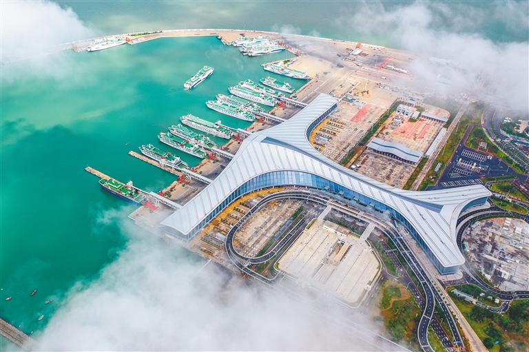 11月6日,俯瞰海口新海滚装码头客运综合枢纽站项目,该项目目前已进入收尾阶段,将启动竣工验收,周边交通配套设施也将陆续完善。