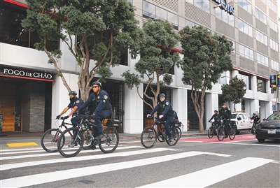 11月10日,警察在美国旧金山亚太经合组织会议场地外执勤。