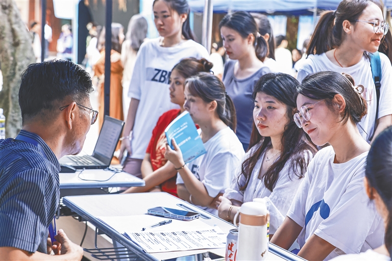 11月11日,“椰城优才·智汇海口·职在椰城”家门口留才进校园招聘会走进琼台师范学院(府城校区),81家企业携2548个岗位进场招才纳贤,涵盖教育、科技、金融、文化等多个行业。