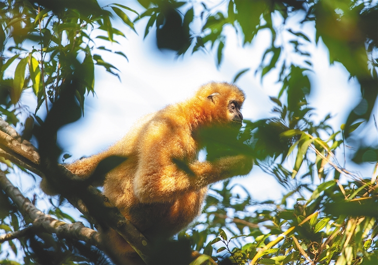 “呜……呜……呜……”海南长臂猿高亢嘹亮的叫声唤醒了沉睡中的雨林。清晨的第一缕阳光照在监测队员的身上。