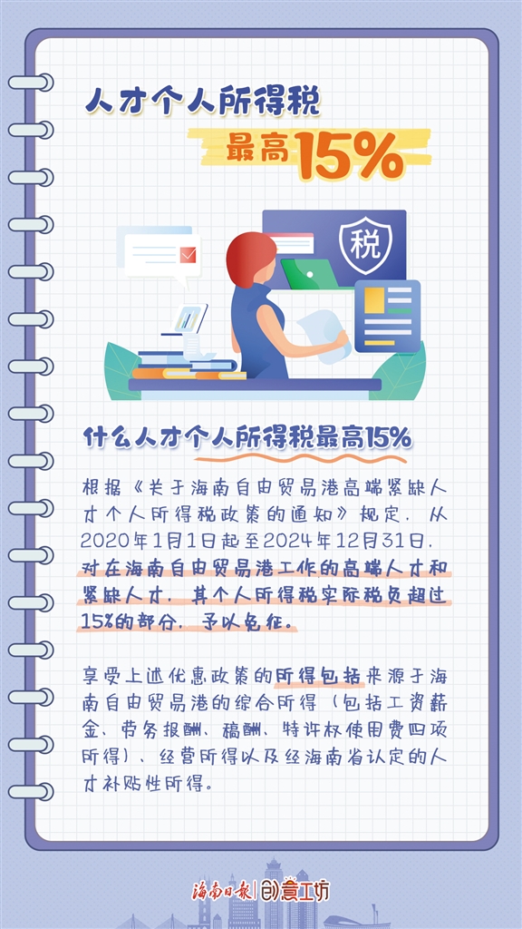 自2020年1月1日至2024年12月31日,对在海南自由贸易港工作的高端人才和紧缺人才,其个人所得税实际税负超过15%的部分,予以免征。
