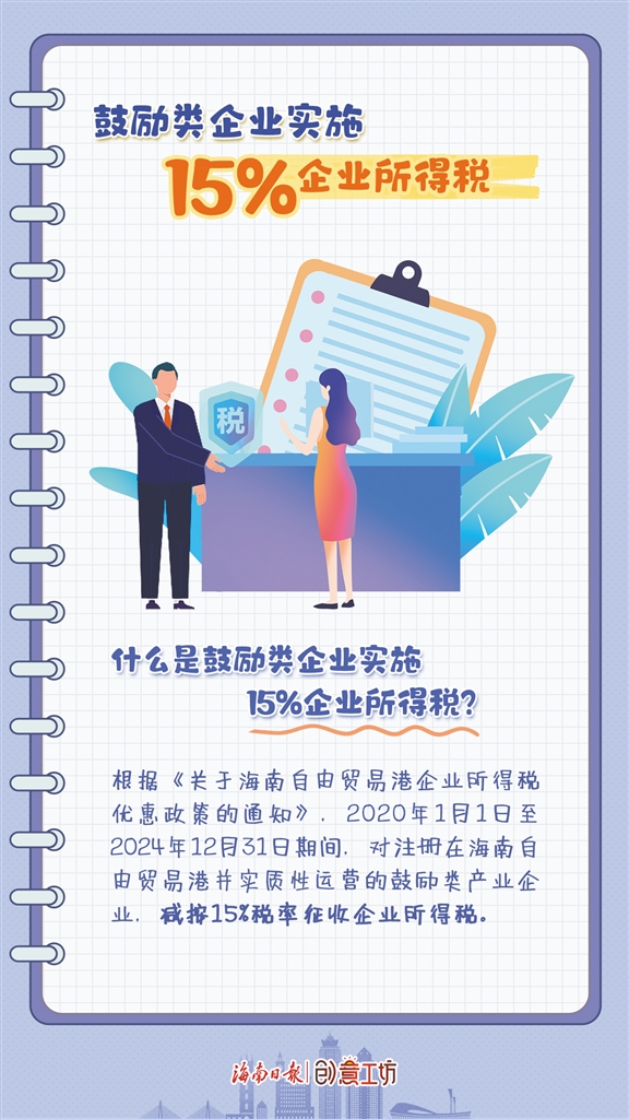 2020年1月1日至2024年12月31日期间,对注册在海南自由贸易港并实质性运营的鼓励类产业企业,减按15%税率征收企业所得税。