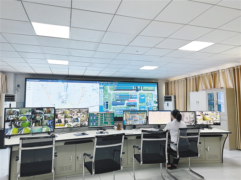 不仅如此,黎安污水处理厂还打破了以往大家对地面式污水处理厂“脏乱差”的刻板印象。在这里,污水处置设施被放置在楼体内,楼顶则建起了生态露台,营造出绿意盎然的厂区环境。智能化管控系统也让污水“治理”转向“智理”。