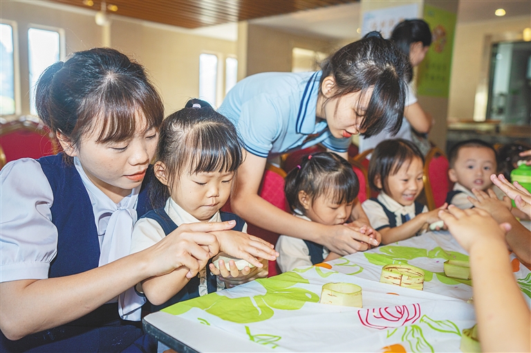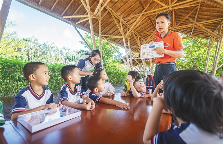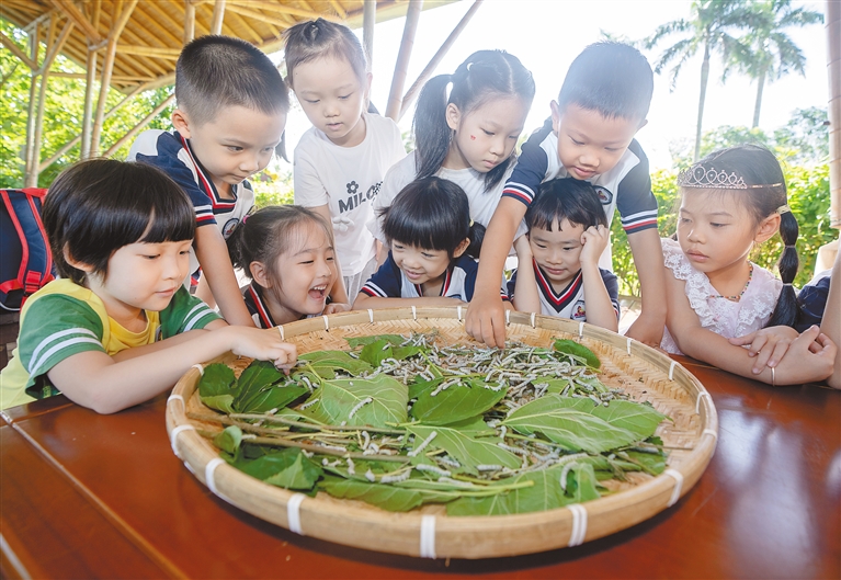 本报海口11月16日讯 (记者邓钰)11月16日,海口多个幼儿园组成研学团队在海口桂林洋国家热带农业公园(以下简称桂林洋公园)开展秋冬研学之旅,认识各类“名、优、稀、特”果树树种、了解桑蚕知识、手制薏粑……丰富多彩的沉浸式体验,让孩子们收获满满。