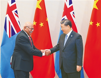 习近平指出,斐济是最早同新中国建交的太平洋岛国,几天前迎来中斐建交48周年。中方把斐济作为好朋友、好伙伴,支持斐济自主选择发展道路、实现国家发展振兴。中方愿同斐方一道,夯实政治互信,拓展务实合作,深化人文交流,推动中斐全面战略伙伴关系不断发展。一个中国原则是中斐关系健康稳定发展的政治基础,希望斐方在事关中国核心利益和重大关切问题上继续给予中方坚定支持。中方也将一如既往支持斐方维护国家主权、安全和领土完整。中方愿同斐方加强共建“一带一路”合作,落实全球发展倡议,推进基础设施、农林渔业、新能源等领域合作,助力斐济经济社会发展。中方愿扩大进口斐济特色产品,支持中国企业赴斐济投资,鼓励更多游客赴斐济旅游。