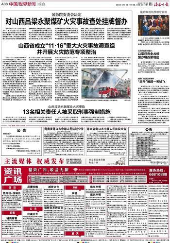 山西省成立“11·16”重大火灾事故调查组并开展火灾防范专项整治