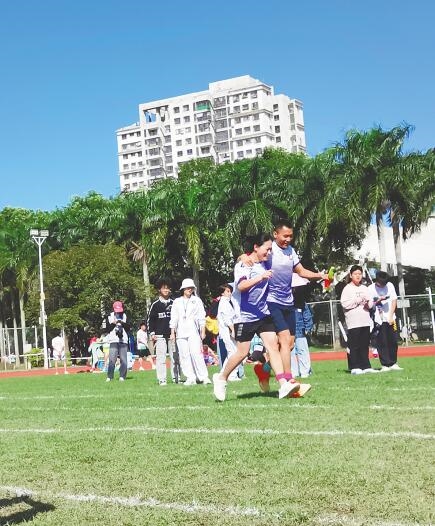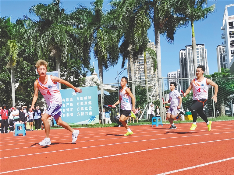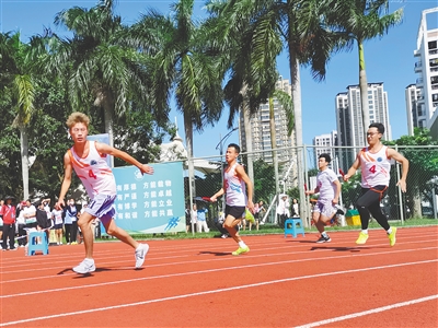 海南的冬天风高气爽,气候宜人,是全民健身的黄金季节。连日来,一系列群众性体育活动纷纷开展。图为海南医学院运动会现场,参加二人三足绑腿跑(左)/接力跑(右)项目的选手在比赛。本报记者 卓上雄 摄
