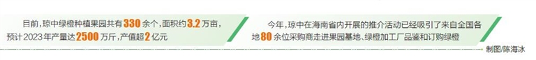 “甜”“汁水足”“果香浓郁”……作为此次活动另一重头戏之一,琼中绿橙主题推介环节气氛热烈。活动现场,新鲜的绿橙品质得到采购商们一致赞赏。目前,琼中绿橙种植果园共有330余个,面积约3.2万亩,预计2023年产量达2500万斤,产值超2亿元。好产品需要好渠道,今年,琼中在海南省内开展的推介活动已经吸引了来自全国各地80余位采购商走进果园基地、绿橙加工厂品鉴和订购绿橙。此次赴京推介,也将把琼中绿橙品牌推向新高度、新热度、新广度。