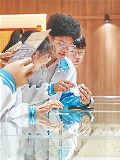 ①11月17日上午,海南省国兴中学“古钱币历史教学馆”正式开馆。馆中陈列的500多枚钱币,集中展现了中国钱币从先秦时期到新中国成立的发展历程,以期让学生通过实物感受时代更迭。本报记者 封烁 摄