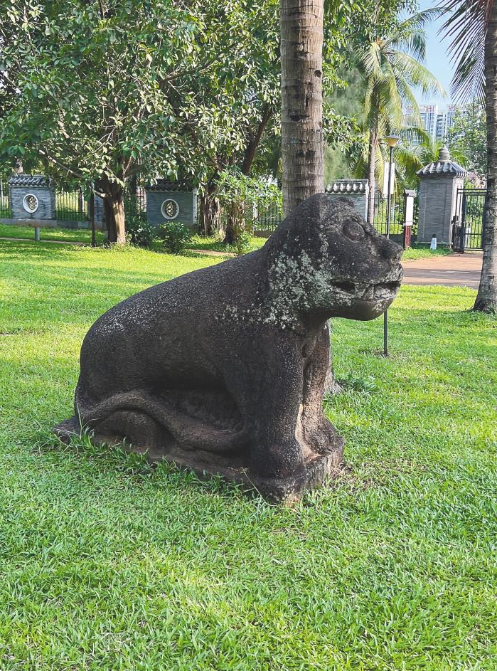 再往后,还可以通过《丘海里墓记》来了解民国时期的丘濬墓。民国十七年(1928年),广东饶平人陈沅利用“随军防琼,留驻海口”的机会,实地考察了丘濬墓,随后写成《丘海里墓记》,此文描述了当时丘濬墓的样子:“林木既尽,有双石狮立道傍。侧首南望,即见丘公之墓。倚阜北向,中洼前突。洼处已辟成田,淖不能越……石华表翁仲虎马,有欹有倒。御碑高约五尺,周绕云龙,额篆奉天诰命,中刊谕祭文二道。下无赑屃。石坊二,前圮后存。”