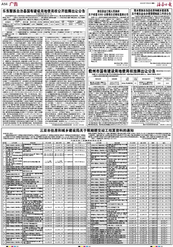 | 海南日报 广告 014 2023-11-201 2023年11月20日 星期一 |