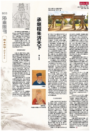 | 海南日报 国士丘濬·理学名臣 019 2023-11-201 2023年11月20日 星期一 |