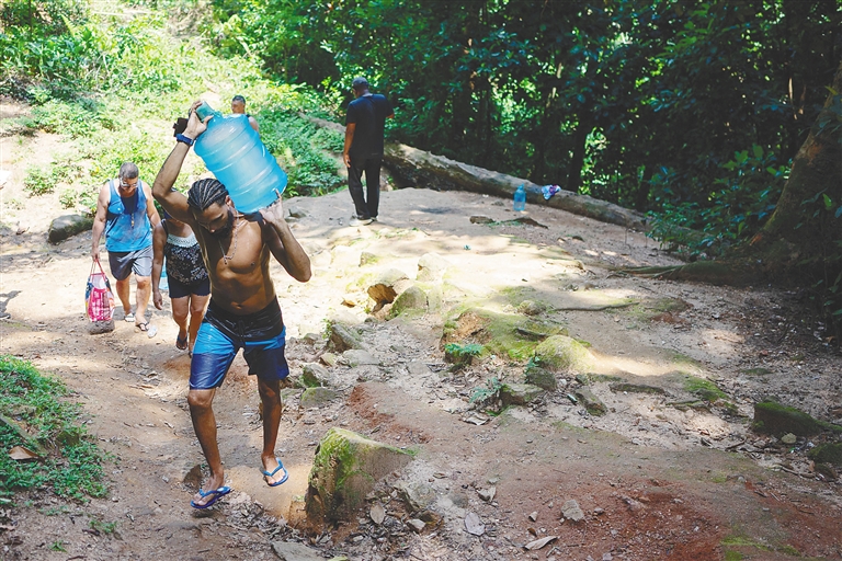 11月17日,在巴西里约热内卢,居民搬运收集到的天然泉水。