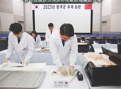 新华社首尔11月22日电(记者陆睿 冯亚松)根据中韩双方达成的共识,今年双方继续举行在韩志愿军烈士遗骸交接活动。2023年11月20日至23日,退役军人事务部、中央宣传部、中央对外联络部、中央网信办、外交部、财政部、中央军委政治工作部等部门组成中方交接代表团赴韩国,共同组织实施第十批在韩志愿军烈士遗骸交接工作。