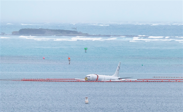 美国海军一架P-8A反潜巡逻机11月20日在夏威夷州一个海军陆战队基地降落时冲出跑道、迫降海中,截至21日仍未被运走。机上无人员伤亡,但事件引发附近居民对环境污染的担忧。当地居民急于知道军方把飞机运走的计划,担心飞机上的燃料或其他化学品泄漏会危害珊瑚礁和其他海洋生物。新华社/法新