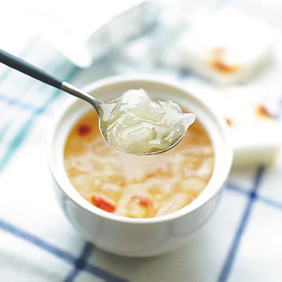 制作步骤:将泡发后的银耳、百合、白果放入锅中,加入适量清水,大火煮沸,转小火慢炖至黏稠,加入适量冰糖、枸杞即可。