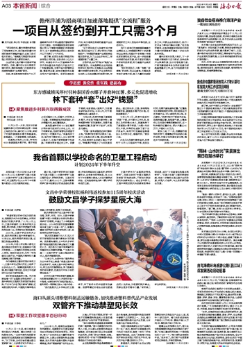 本报文城11月23日电(记者刘梦晓)11月23日,文昌中学“文昌少年星——文昌中学号”卫星工程启动仪式举行,该卫星预计在2024年下半年搭载火箭进入太空开展测试实验。
