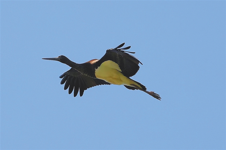 黑鹳在海南第一次被记录是在1899年,相隔了100年后,在1999年又有了第二次发现黑鹳的记录。这次是昌江首次记录到黑鹳,也是海南第三次记录到黑鹳。