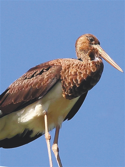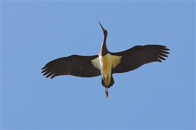 据了解,黑鹳是一种迁徙鸟,不善鸣叫,性机警而怕人,喜欢在沼泽和湿地上觅食鱼、蛙、甲壳类和昆虫等,寿命可达二三十年。由于数量急剧减少,黑鹳已被《濒危野生动植物种国际贸易公约》列为濒危物种。