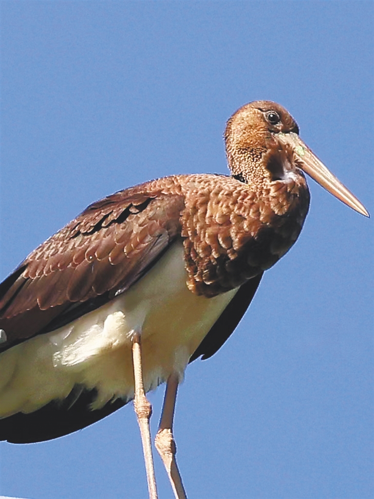 本报讯 (记者刘婧姝 特约记者符文倩)近日,一只国家一级保护野生动物黑鹳现身昌江黎族自治县打根塘湿地。黑鹳在海南极少出现,上一次在海南被记录到是20多年前。
