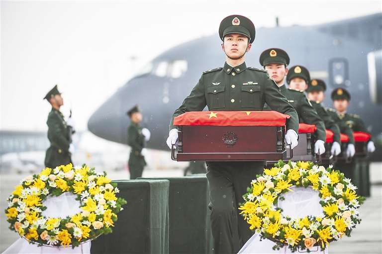 谌贻琴指出,70多年来,祖国和人民始终没有忘记在抗美援朝战争中英勇牺牲的烈士们。在习近平总书记亲自关心下,我们连续10年以隆重礼仪迎接938位志愿军烈士遗骸归国安葬,让他们回到祖国怀抱。烈士们的功绩彪炳千秋,烈士们的英名万古流芳。