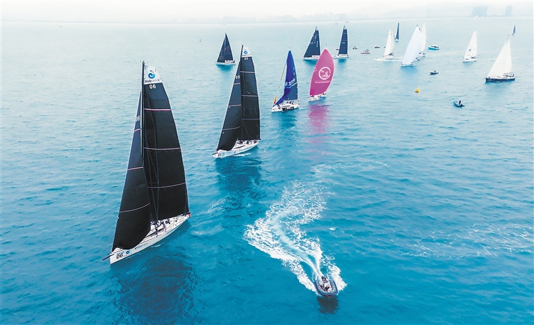 11月25日,2023第十二届环海南岛国际大帆船赛进入第二个比赛日,参赛队伍纷纷从三亚启航开始环岛帆船之旅。