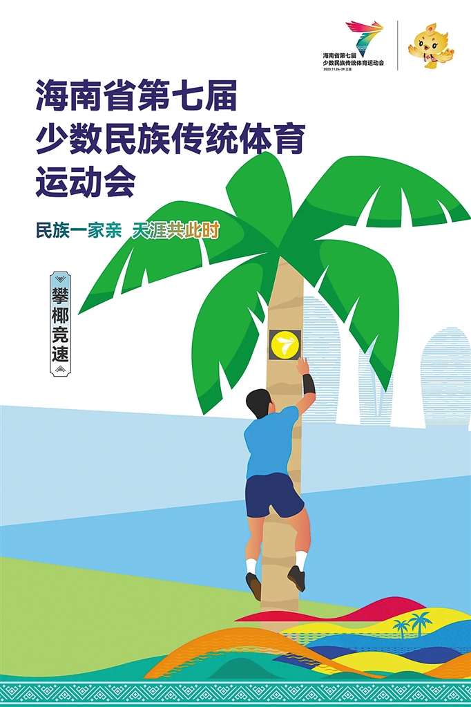 项目简介:攀椰竞速集趣味性、娱乐性、竞技性为一体。选手在10米至11米的天然椰子树或人工制作的仿真椰子树上进行攀爬,参赛选手自选攀爬姿势,爬到椰子树顶端并触碰铃铛,用时最短者获胜。2010年,该项目首次被列为海南省少数民族传统体育运动会正式比赛项目。