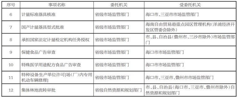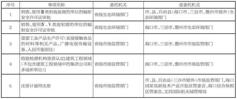 海南省人民政府关于将部分省级行政许可事项 委托市、县、自治县和海南自由贸易港重点园区实施的决定