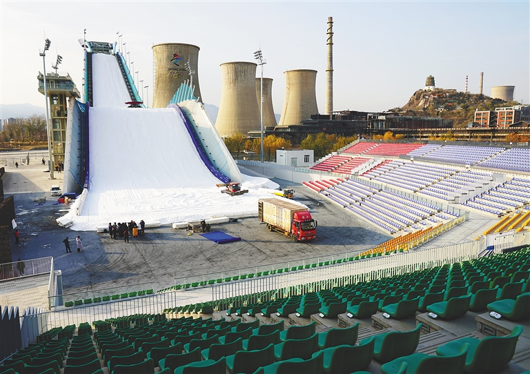 这是11月25日拍摄的首钢滑雪大跳台。