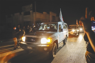 开罗新闻电视台的直播画面显示,24日黄昏过后,载有以方获释人员的救护车队从加沙地带穿越拉法口岸。