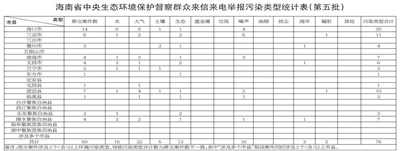 从分布的区域来看,海口市、澄迈县、三亚市等地的群众信访举报件较多,数量分别为14件、7件、6件。