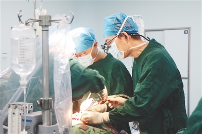 ①华西医院心脏及大血管外科主任安琪(右一)开展手术。