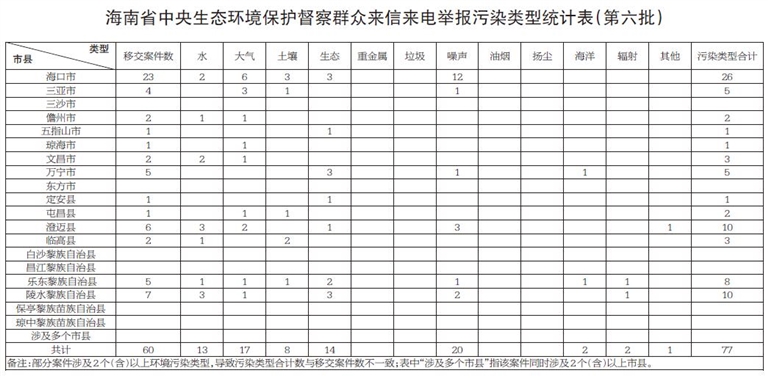 本报海口11月27日讯(记者周晓梦)11月27日,中央第三生态环境保护督察组向我省转交第六批环境信访交办件60件。目前累计已移交群众信访举报件266件。