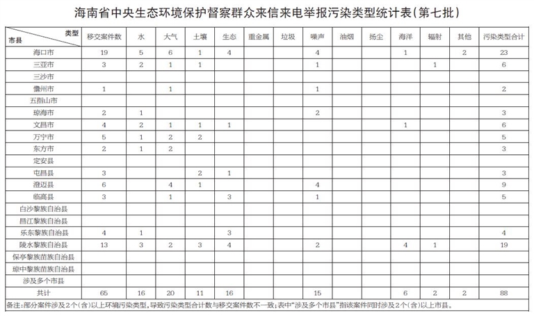 本报海口11月28日讯(记者周晓梦)11月28日,中央第三生态环境保护督察组向我省转交第七批环境信访交办件65件。目前累计已移交群众信访举报件331件。