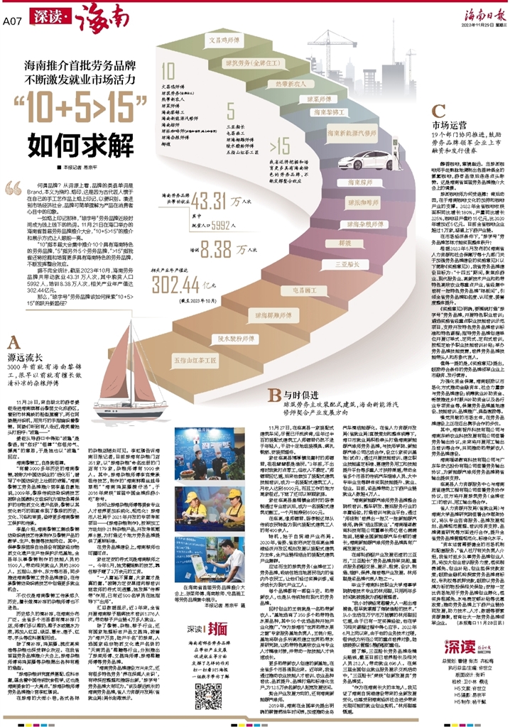 那么,“琼字号”劳务品牌该如何探索“10+5>15”的跃升新路径?