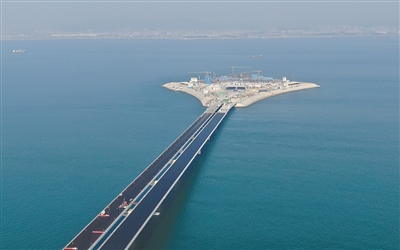 图为深中通道西人工岛,形似巨大的风筝。新华社记者 邓华 摄