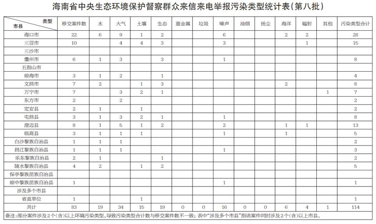 本报海口11月29日讯(记者周晓梦)11月29日,中央第三生态环境保护督察组向我省转交第八批环境信访交办件83件。
