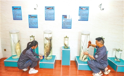 11月27日,在松涛水库儋州南丰库区的水生态文明馆,管理人员正在维护馆内鱼类标本。该馆于今年10月份改造完成投入使用,在馆内收藏88种在松涛水库栖息的鱼类标本,丰富了水生态文明馆展示内容。水生态文明馆建设旨在展示松涛水库丰富的鱼类资源,提升群众对鱼类和水资源的保护意识。