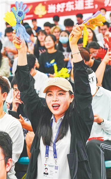 同样激动不已的,还有看台上的众多观众。伴随队员们的精彩较量,整个赛场上加油助威声此起彼伏。“比赛非常精彩,有的同学不能来,我就录下来发给他们,让他们‘云’观看。”海南热带海洋学院大一学生韩佳旭被火热的气氛所感染,不时为喜欢的运动员呐喊助威。
