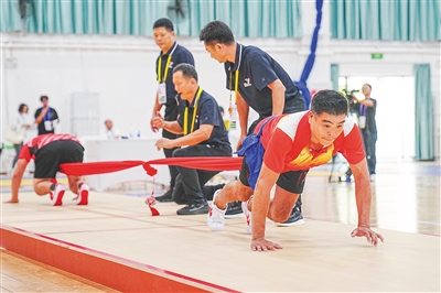 一场体育赛事的成功举办,离不开赛场内外工作人员的全方位保障。“在比赛前,我们已经对场馆场地、设施设备等进行多轮查验,今天所有的流程都经过多次演练,以确保赛事如期有序进行。”押加项目竞赛委员会竞赛助理王云峰介绍,他们还制定了交通、安保、应急预案等各种方案,在比赛场地安排了安保、医疗人员和志愿者,为赛事提供专业周到的服务保障。