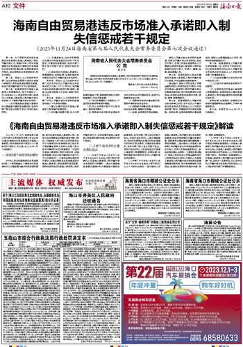 海南自由贸易港违反市场准入承诺即入制失信惩戒若干规定