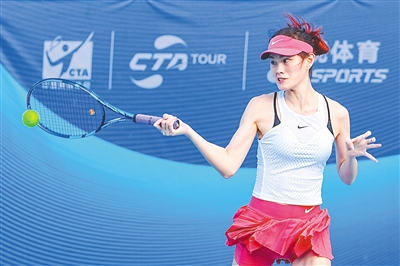 12月2日,2023中国网球巡回赛三亚站暨三亚网球挑战赛(CTA500)在三亚国际网球中心开拍。这是中国网球巡回赛第一次走进三亚,也是三亚迄今为止举办的级别最高、水平最高的网球赛事。图为运动员在比赛。文/本报记者 徐慧玲 图/本报记者 王程龙