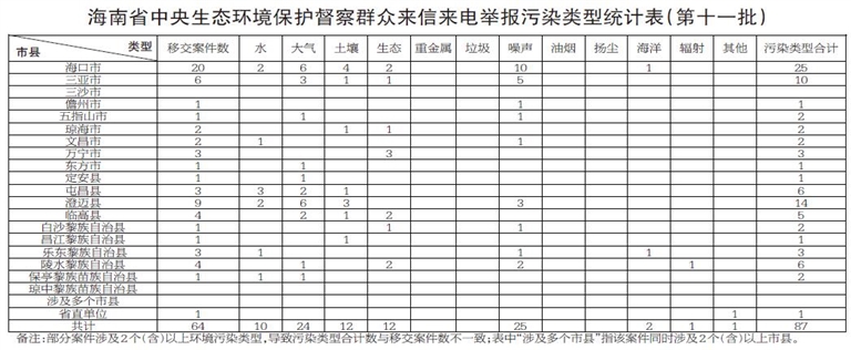 本报海口12月2日讯(记者周晓梦)12月2日,中央第三生态环境保护督察组向我省转交第十一批环境信访交办件64件。目前累计已转交群众信访举报件614件。