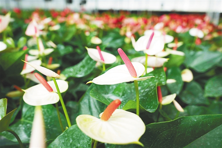 从2011年加入团队起,牛俊海一直牵头负责红掌新品种选育工作。“优质红掌鲜切花是市场上的紧俏货,国内一年的消费量大约2000万枝。不过以前,国内红掌鲜切花优质种质资源一直被国外垄断。”牛俊海回忆说。