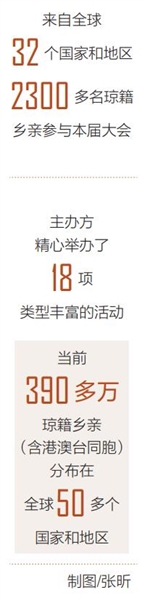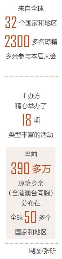 当前,390多万琼籍乡亲(含港澳台同胞)分布在全球50多个国家和地区,许多人经过长年打拼,在旅居地事业有成。他们始终心系家乡,是推进海南与世界连接,建设自贸港的重要力量。